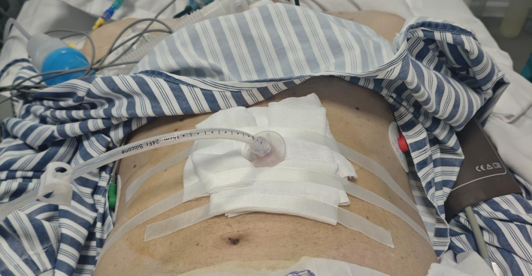 患者黄某某,男性,70岁,主因“外伤致肢体瘫痪3年余,伴咳嗽、咳痰19天”收入;入院诊断“颈椎骨折、吞咽功能障碍、肺部感染”等。患者术后吞咽功能障碍,留置胃管长达三年余,期间吸入性肺炎反反复复,迁延不愈,对临床康复治疗产生很大负面影响。家属也属于医疗行业专业人员,已退休,手术前已充分了解了“胃造瘘”对患者的益处,在对比了多家医院的“胃造瘘”手术开展情况,最终选择在我院进行手术。经全面评估患者全身状况,并和患者及家属积极沟通,考虑对患者进行“经皮内镜下胃造瘘术(PEG)”。我院内镜室与上级专家教授联合施行此次手术,在胃镜下完成了经皮穿刺、固定胃壁、置管等操作,顺利留置胃造瘘管,为患者重建营养通道,“消灭”了吸入性肺炎最大的高危因素,让患者摆脱“肺炎”的“紧箍咒”,能安安心心进行进一步的康复治疗。术后,患者管饲情况良好,穿刺口窦道形成,并已出院。