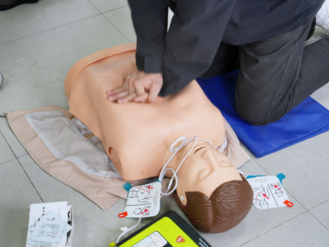 针对心脏骤停急救,讲师重点拆解了AED的操作流程,让学员熟练掌握“救命神器”的使用方法,牢牢把握急救“黄金4分钟”。